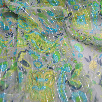 Luxury Shimmer Gold Line Cut Flower Eco-Friendly Silk Fabric Soft Adult Plain Lurex Crepe for Sleepwear Dress 100% Silk