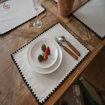 Witte, blanco, op maat gemaakte, geborduurde placemats met gegolfde rand, hittebestendig, antislip, handgemaakt, rechthoekig, voor de eettafel