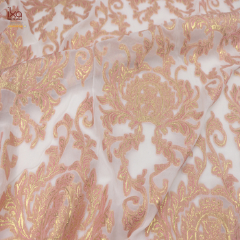 ผ้าไหมเนื้อนุ่มลายดอกไม้ตัดเย็บอย่างประณีต สีทองระยิบระยับ หรูหรา เป็นมิตรกับสิ่งแวดล้อม เหมาะสำหรับชุดนอนและชุดเดรส ผลิตจากผ้าไหมแท้ 100%
